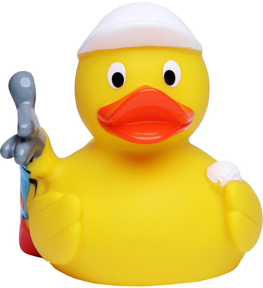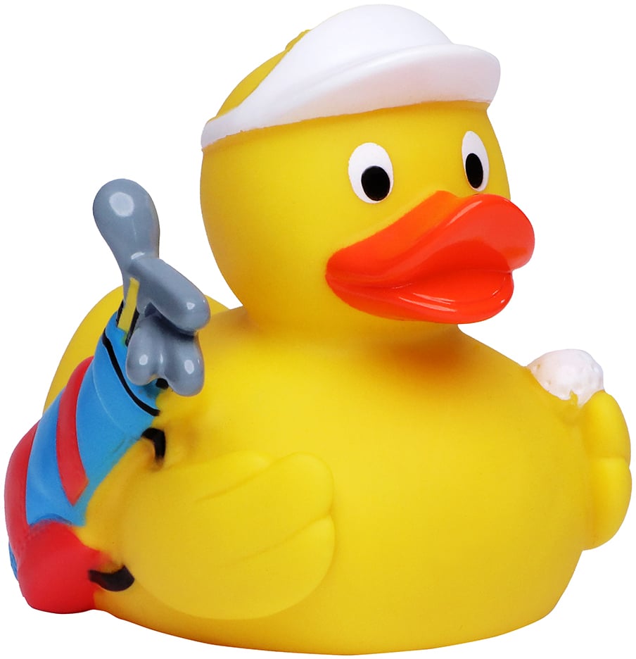 With a golf bag, peaked cap and extra ball, this duck wants to turn your bathtub into a golf course... However, she spends more time looking for her clubs and balls - they can't swim so well, unlike our duck. Nonetheless, the platypus, ambitious as she is, is constantly trying to improve her handicap and anyone who can play on water can play anywhere!