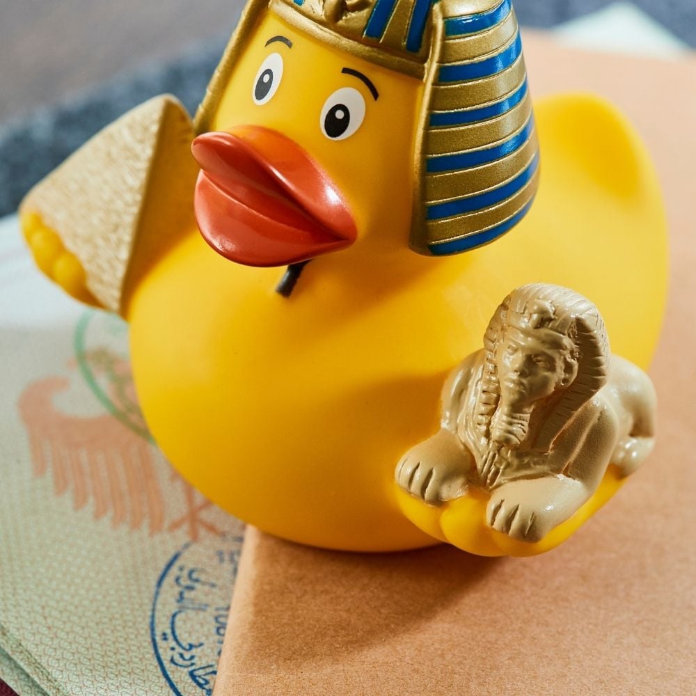 Egypt is simply fascinating with its ancient history and culture. Numerous puzzles, but also true stories, are told around this country with its fantastic buildings. The CityDuck Egypt is sure to delight not only Egypt aficionados. The 8 cm high duck in the Pharaoh look also comes with the sphinx, a mini pyramid and design protection.
