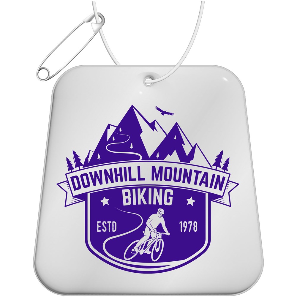 Attach this reflective hanger to clothing, bags or other outdoor items to increase visibility in the dark. By using these certified hangers you make traffic safety a feature of your brand. The hangers are supplied with a white string and safety needle for easy mounting. Available in various shapes and sizes, and in white or yellow colour. Features a florescent RFX™ soft reflective film made from phthalate free PVC or the more sustainable option TPU. Materials have been tested in accordance with SVHC (Substances of Very High Concern) REACH candidate list and are free of phthalates. The hangers are CE tested and approved in accordance with EN 17353 Type B 1. Each item is supplied with a 10 cm string and needle to easily attach to a bag, jacket etc. Packed together with an information sheet in a glassine bag, a sustainable material made from wood pulp. Made in Europe.