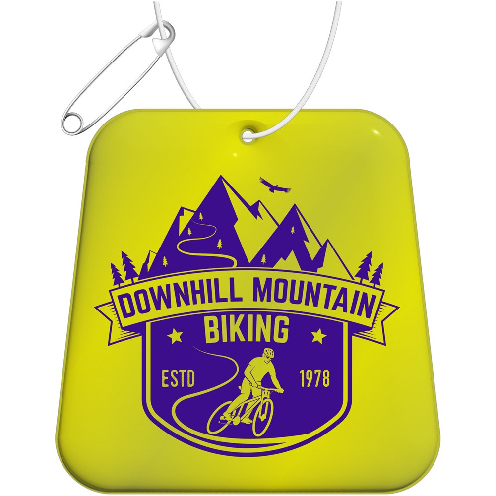 Attach this reflective hanger to clothing, bags or other outdoor items to increase visibility in the dark. By using these certified hangers you make traffic safety a feature of your brand. The hangers are supplied with a white string and safety needle for easy mounting. Available in various shapes and sizes, and in white or yellow colour. Features a florescent RFX™ soft reflective film made from phthalate free PVC or the more sustainable option TPU. Materials have been tested in accordance with SVHC (Substances of Very High Concern) REACH candidate list and are free of phthalates. The hangers are CE tested and approved in accordance with EN 17353 Type B 1. Each item is supplied with a 10 cm string and needle to easily attach to a bag, jacket etc. Packed together with an information sheet in a glassine bag, a sustainable material made from wood pulp. Made in Europe.