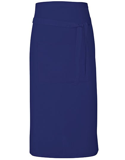 Twill Weave | Pre-shrunk | Reactively dyed | Front pocket is 25 x 20 cm with a practical pen holder | Reinforced at stress points | Easy care | Belt out of one piece in apron fabric | Unprinted, washable up to 60 °C