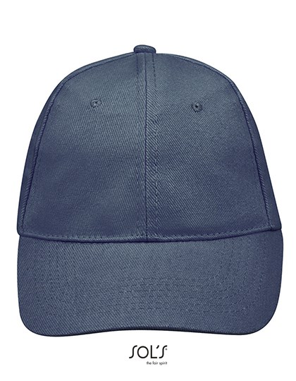 6 panel | Preformed peak | 6 embroidered ventilation eyelets | Adjustable back fastening with metal buckle | Thick brushed Cotton