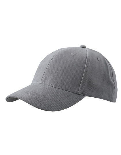 Classic cap with laminated front panels | Highly brushed cotton | Clip fastener in mat silver with embroidered eyelet | Six embroidered air holes | Six decorative stitching lines on the visor | Padded satin sweat band