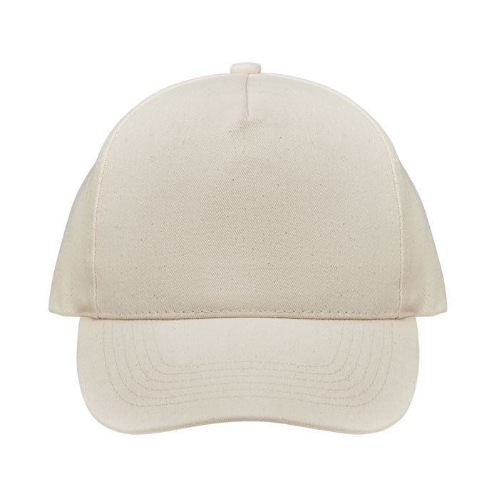 5 panel baseball cap in 250 gr/m² organic brushed cotton with metal adjustable strap back buckle closure.