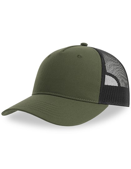 Main fabric: 100% certified recycled Polyester Twill / Side & Back: 100% certified recycled Polyester (made out of 3 bottles) | Classic 5 panel trucker cap in recycled polyester twill | Recycled mesh | Recycled PVC snapback closure | Wide crown | Light and breathable
