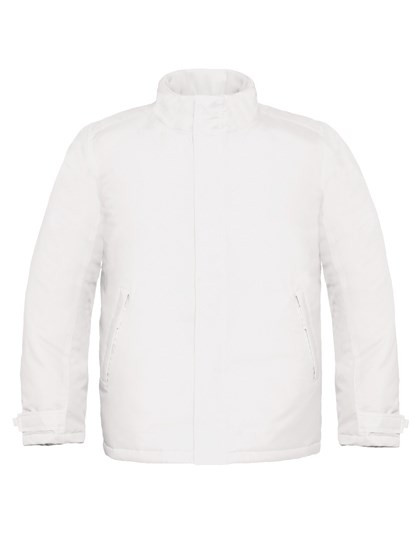 Anti-pilling micro-fleece lined collar & half back add comfort | Tone-on-tone colour lining and accessories | Polyester padded bodylining | Concealed 3 panelled hood with eyelets and flat drawstring with plastic ends | Chin protector | Full front zip fastener with velcro storm flap | Inside zipped pocket to keep valuables safe | Ergonomic sleeves and articulated elbow to follow each movement | 2 front zipped pockets with storm flap providing roomy and secure storage | 1 inner phone pocket | velcro adjustable cuffs with pull | Easy access for printing and embroidery thanks to the concealed zip opening at the bottom of the lining | B&C Collection is member of the Fair Wear Foundation | Colour White is suitable for sublimation printing