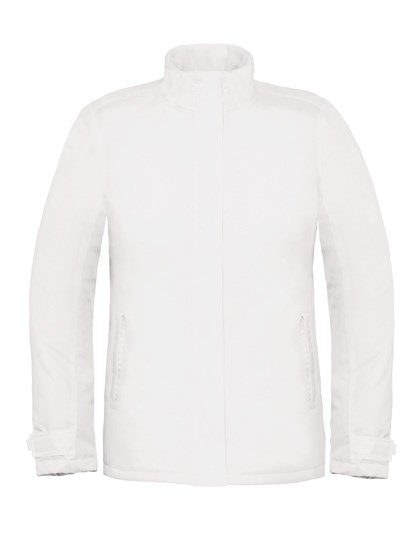Anti-pilling micro-fleece lined collar & half back add comfort | Tone-on-tone colour lining and accessories | Polyester padded bodylining | Concealed 3 panelled hood with eyelets and flat drawstring with plastic ends | Chin protector | Full front zip fastener with velcro storm flap | Inside zipped pocket to keep valuables safe | Ergonomic sleeves and articulated elbow to follow each movement | 2 front zipped pockets with storm flap providing roomy and secure storage | 1 inner phone pocket | velcro adjustable cuffs with pull | Easy access for printing and embroidery thanks to the concealed zip opening at the bottom of the lining | B&C Collection is member of the Fair Wear Foundation | Colour White is suitable for sublimation printing