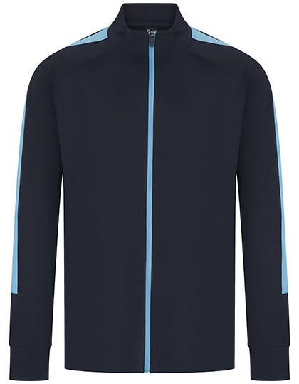 Knitted tracksuit top with contrast colour panels on outer sleeve | Contrast colour centre front zip | Zipped side pockets | Funnel neck and 1x1 ribbed cuffs | Semi-automatic lock zip sliders on all zips