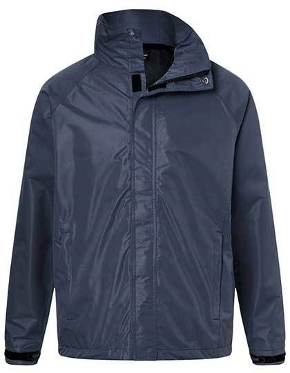 Functional outer jacket for extreme weather conditions | Wind- and waterproof fabric (3,000 mm water column), with TPU-coating | Breathable and permeable to vapour (3,000 g/m²/24 h) | 2 concealed zipped pockets, breast pocket and mobile phone pocket inside | Elastic cord with stoppers on waistband and hood | Hood concealed inside the collar | Zip for decoration at the back | Sealed seams | Lining: polyester