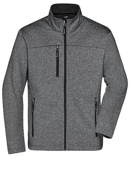 Soft light jacket in melange look | Pleasant, soft 2-ply softshell | Contrasting inside made of fleece | Full-length, covered, front zip with chin protection | Stand collar | 2 side pockets and 1 zipped chest pocket | Slightly fitted