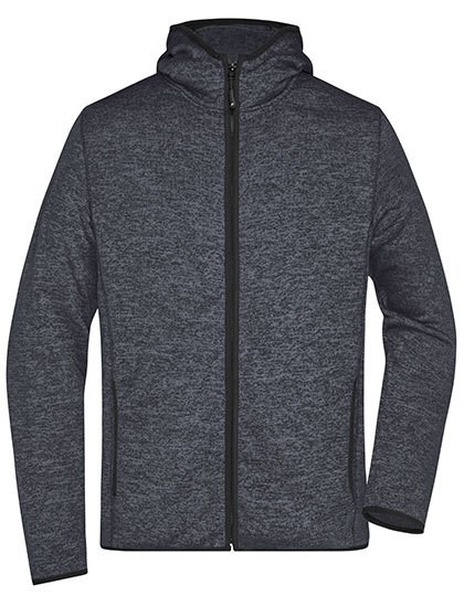Hooded jacket made of knitted fleece in melange look | Smooth, warming, easy-care fabric | Outside knitted look, inside roughened, thus soft and fluffy | Slim-fit dividing seams | Attached hood | Contrasting cuffs | 2 pockets at the front