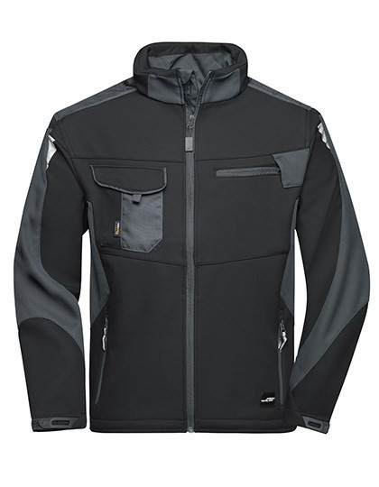 Robust, durable softshell material | Wind- and water-repellent (2,000 mm water column) | Breathable and permeable to vapour (2000 g/m²/24 h) | Stand collar | Shoulder area reinforced with CORDURA® | Full-length, covered front zip with wind guard | Side and chest pockets with zip | Breast pocket with flap, inside pockets | Reflective elements (without protective function/no PPE) on the arm and back section