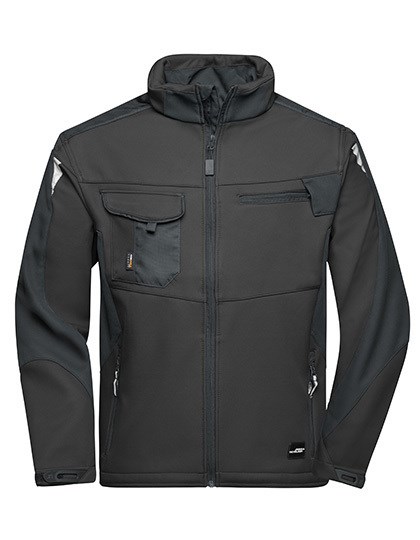 Robust, durable softshell material | Wind- and water-repellent (2,000 mm water column) | Breathable and permeable to vapour (2000 g/m²/24 h) | Stand collar | Shoulder area reinforced with CORDURA® | Full-length, covered front zip with wind guard | Side and chest pockets with zip | Breast pocket with flap, inside pockets | Reflective elements (without protective function/no PPE) on the arm and back section