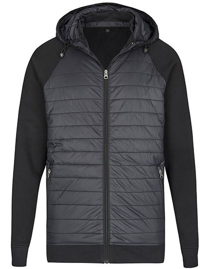 Quilted hybrid jacket | Classic fit | Three-layer sweatshirt material on sleeves and back, softly brushed inside, with a 100% cotton surface | YKK nylon front zip | Side pockets with YKK zip | Detachable Hood | 2x1 ribbed cuffs and waistband | Removable "miners mate" label | Neutral size label in waistband, placed to the side | Pre-shrunk and enzyme-washed