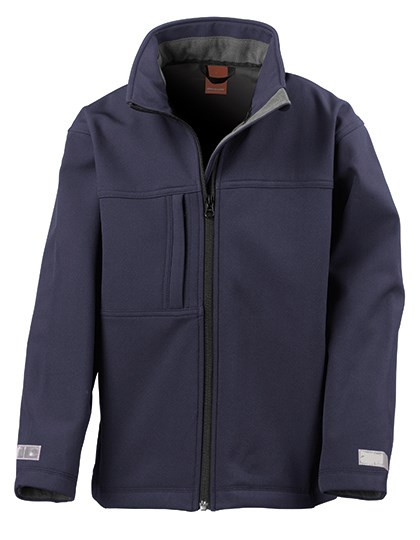 320g/m² Soft shell 3 layer | Waterproof (bonded fabric) (8000 mm), breathable (1000 mvp) and windproof | Outer-layer: 93% polyester, 7% elastane | Mid-layer: TPU breathable membrane | Inner-layer: Microfleece for extra warmth | Fashionable shaped longer back panel | Soft athletic stretch fabric and comfortable active fit | YKK full front zip fastening with inner storm flap | 2 zip closing side pockets | 1 zip closing chest pocket | 2 large inside pockets | 1 inside phone pocket (11-14 years only) | Decorative front and back yoke | Cuffs with reflective prismatic detail | Decorativ access: open/inner shoulder zip facing
