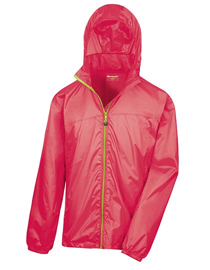 Waterproof: 3.000 mm | Breathable: 1.000 g/m²/24h | Windproof | Full front contrast zip | Taped seams | Side pockets: one zipped | Elasticised cuff | Integral elasticised hood | Hangtag | Adjustable hem cord | Matching stow bag | Printed neck label