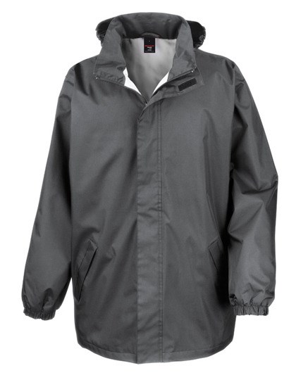 Outer: 190T Pongee StormDri 2000 Coating | Body: Single-jersey lining (130 g/m², Polyester) | Sleeves: 100% Polyester Lining | Waterproof 2.000mm and windproof, mid weight | 2 front pockets, inside pockets | Elasticated cuffs with tear release adjusters | Full front zip fastening with storm flap cover | Concealed 3 panel fold-away adjustable hood in collar | High collar design | Fully taped waterproof seams | Decorativ access: full hem and left chest