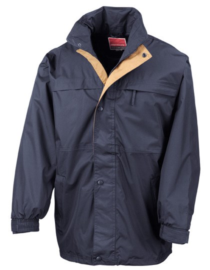 Outer: 200gsm StormDri 4000, 100% Polyester with PVC coating | Lining: 100% Polyester | Waterproof (4000mm) and windproof | Taped seams and twin needle stitched seams | Concealed hood in collar | Full front zip fastening | 2 Side pockets, 1 chest pocket and 1 inside phone pocket | Elasticated cuffs with tear release adjusters | Adjustable shockcord hem and stud closing storm flap | Contrasting colour mesh lining | Decorativ access: concealed inner back zip