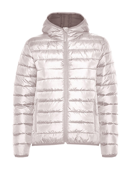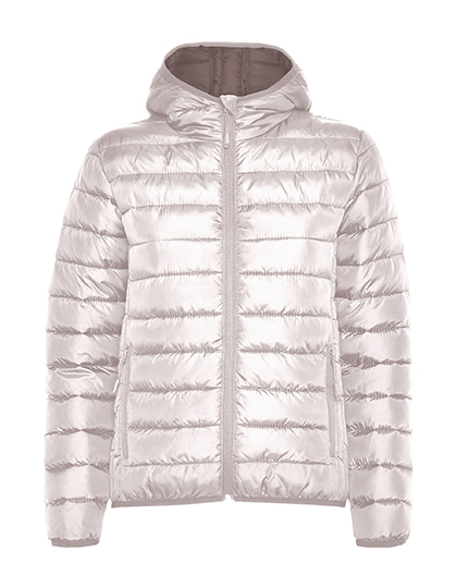 Outer material: 100% polyester, 300 taffeta; Lining: 100% polyester, 290 taffeta; Padding: 100% polyester, 150 g/m² | Quilted jacket with attached hood lined with soft, feather-light padding | Full-length, concealed zip in matching tone with chin protection | Two side pockets with zips | Elastic trim in same colour on cuffs, hem and hood | Lining in contrasting colour | Includes a bag for storing the jacket | Tailored cut | Wind- and water-repellent