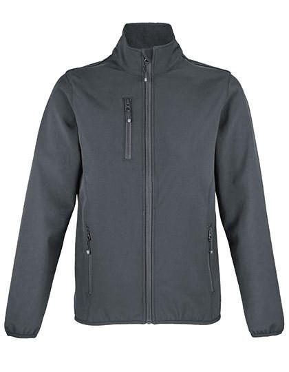 Recycled Polyester / Elastane - 3 layers, Fleece inside: 100% Polyester | Sustainable fabric | Softshell 270 | Comfortable cut | Zipped opening | 2 side pockets and 1 zipped chest pocket | Contrasting zippers | Elastic bias at the cuffs and hem | Tear-Away label