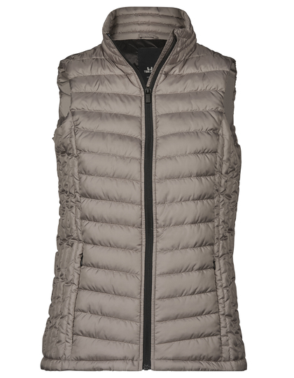 100% recycled Polyester | 100% Polyester 300T with 100% Polyester lining and padding | Two large front pockets | Inner pocket | SBS zippers | Shaped fit | Water repellent | Bionic finish CatalogNr: TJ9633 Composition: 100% Polyester Care Instructions: Washable at 30°C Product: Waistcoats & bodywarmers Properties: Breathable|Water-repellent|Wind-resistant Colorfulness: 1-coloured Production Certificates: Fair Working Conditions|OEKO-TEX® STANDARD 100|Recycled Polyester Collection: Sectors Trade Fair and office|Golf|Waistcoats & Bodywarmer 2023 Cut: Slim fit Menu: Ladies|Partner Finish: Access for decorating back Composition: Polyester (partially) Vests (kind): bodywarmers