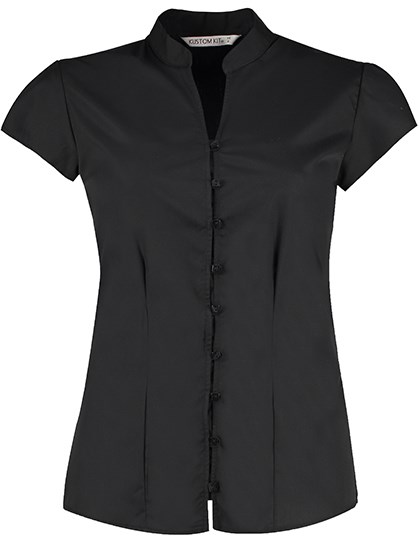 Kustom Kit - Tailored Fit Mandarin Collar Poplin Blouse Cap Sleeve