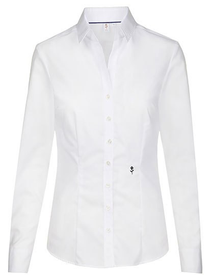 Women’s blouse from 100% cotton | Fil a fil | Non-iron | Kent collar | Double-button cuff | Back dart for shaped Fit | Slim fit | Long sleeved | Black Rose symbol on the front CatalogNr: SN080613 Composition: 100% Cotton Weight: 120 g/m² Care Instructions: Washable at 30°C|Noniron|May be ironed|Suitable for tumble drying Product: Blouses Sleeve: Long sleeve|Cuffs Colorfulness: 1-coloured|Pastel Production Certificates: OEKO-TEX® STANDARD 100|Fair Working Conditions Collection: Sectors Trade Fair and office|Business Material: Fil à fil Cut: Slim fit Menu: Ladies Composition: Cotton (100%) Blouses (details): Business