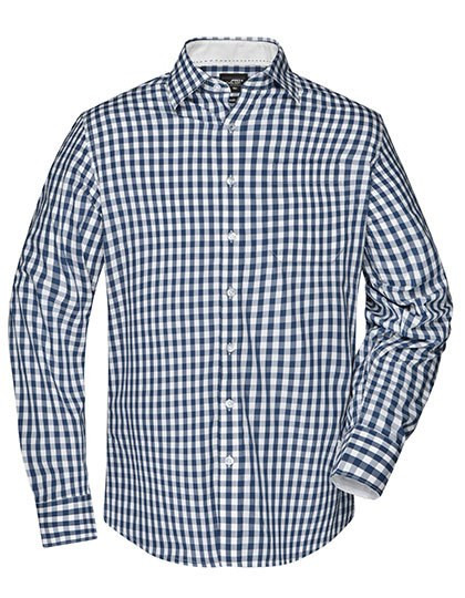 Fashionable checked shirt with plain insets on collar and cuff | High-quality poplin with easy care finish, easy to iron | Curved hem-line | Classic fit | Slightly fitted | Breast pocket 13 x 15 cm | 2 side pleats