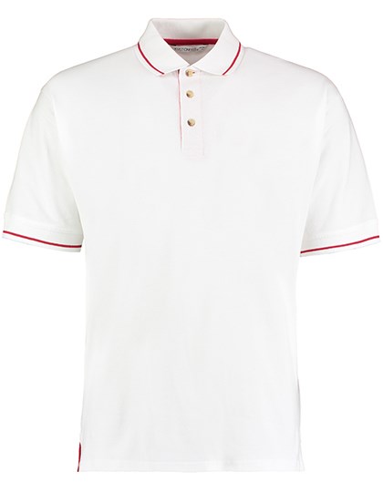 1x1 rib flat knit collar and cuffs with contrast stripe | Three button slanted contrast top placket | Contrast herringbone taped side vents | Half moon back yoke | Taped shoulder seams | Double topstitching around cuffs | Self fabric back neck and inner collar binding in contrast colour | Double topstitched armholes and shoulder seams | Twin needle hem | Spare button attached to care label | Woven back neck label