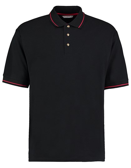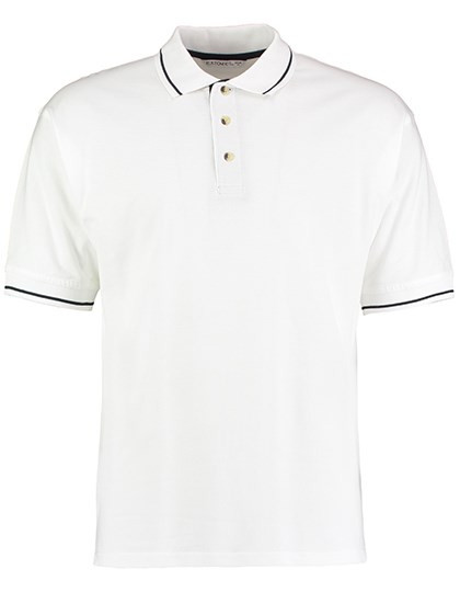 1x1 rib flat knit collar and cuffs with contrast stripe | Three button slanted contrast top placket | Contrast herringbone taped side vents | Half moon back yoke | Taped shoulder seams | Double topstitching around cuffs | Self fabric back neck and inner collar binding in contrast colour | Double topstitched armholes and shoulder seams | Twin needle hem | Spare button attached to care label | Woven back neck label