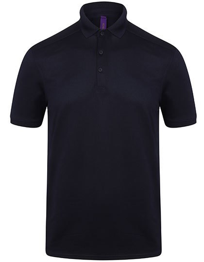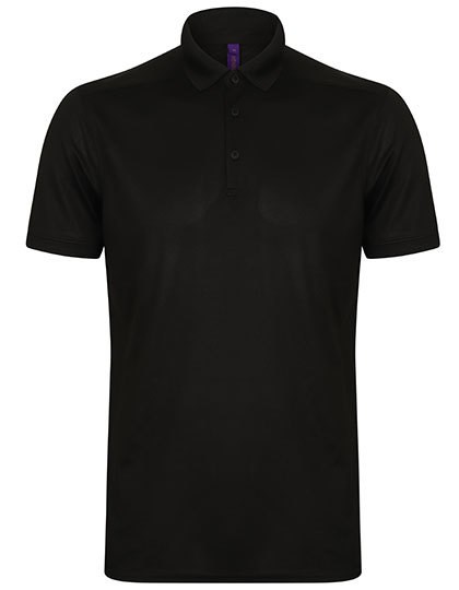 Modern fit Wicking men’s polo shirt with added stretch | Lightweight micro-fine piqué with a short point collar, fitted sleeve and cuffs | Front and back shoulder yolk detail | Micro-fine piqué is ideal for printing and embroidery | 3-button placket, DTM buttons | Henbury Cut-out back neck brand label