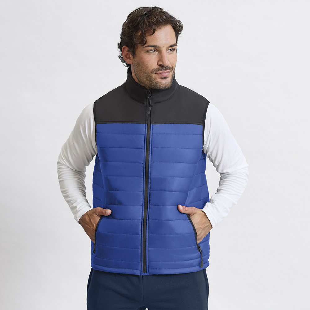 Waterproof and breathable vest in combination of soft shell and polyester materials. In an elegant black color construction, with zipper closure and side zipper pockets, with pullers for easy opening. Available in sizes S, M, L, XL, XXL.