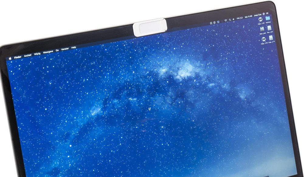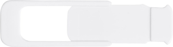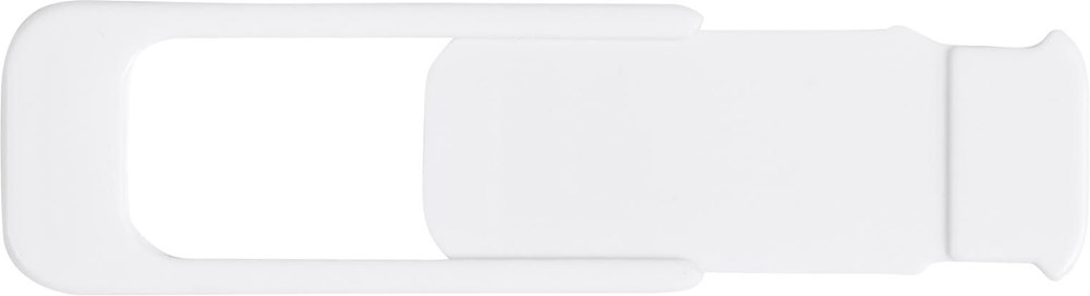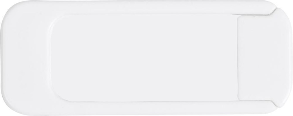 PP webcam cover with double-sided stickers to hold the cover in place. The cover easily slides open and closed. Item does not stick on glass surfaces.