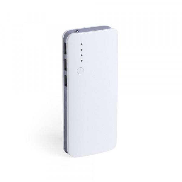 External auxiliary battery with high charging capacity -10,000 mAh-. With triple USB output to charge up to 3 devices simultaneously, including charging status LEDs. Curved design with white color body and sides in bright colours, with a large branding area. Presented in an attractive design box.The capacities shown in all our external auxiliary batteries are real, all of them incorporating non-recycled, grade A batteries, with a service life of at least 500 charging cycles, and complying with CE regulations. In addition, they are manufactured according RoHS standards, and in compliance with the following safety requirements: Power bank overcharge protection system. Complete discharge protection system, which increases the durability of the power bank. Blocking system to prevent short circuits. Constant charging transfer system, in accordance with the capacity of the target device.
