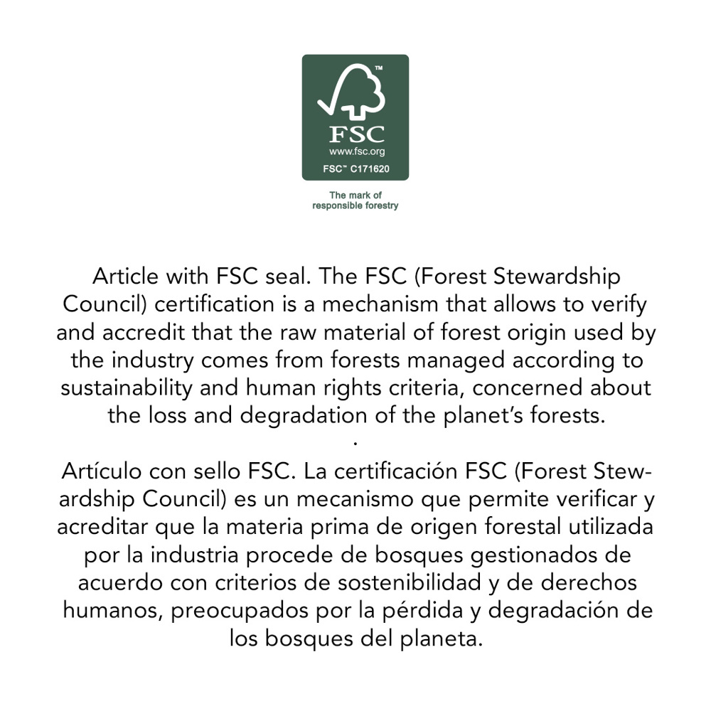 Nature line, external auxiliary battery made of bamboo from sustainable forests and with FSC® certification. With 10,000 mAh capacity and with integrated 5W wireless charger. Suitable for devices compatible with wireless charging and including a solar charging panel. With charging status indicator, 2 USB outputs, 1 Micro USB input, and a Type-C input. Micro USB charging cable included and presented in an attractive eco-design box. With FSC® label on the item. The capacities shown in all our external auxiliary batteries are real, all of them incorporating non-recycled, grade A batteries, with a service life of at least 500 charging cycles, and complying with CE regulations. In addition, they are manufactured according RoHS standards, and in compliance with the following safety requirements: Power bank overcharge protection system. Complete discharge protection system, which increases the durability of the power bank. Blocking system to prevent short circuits. Constant charging transfer system, in accordance with the capacity of the target device.